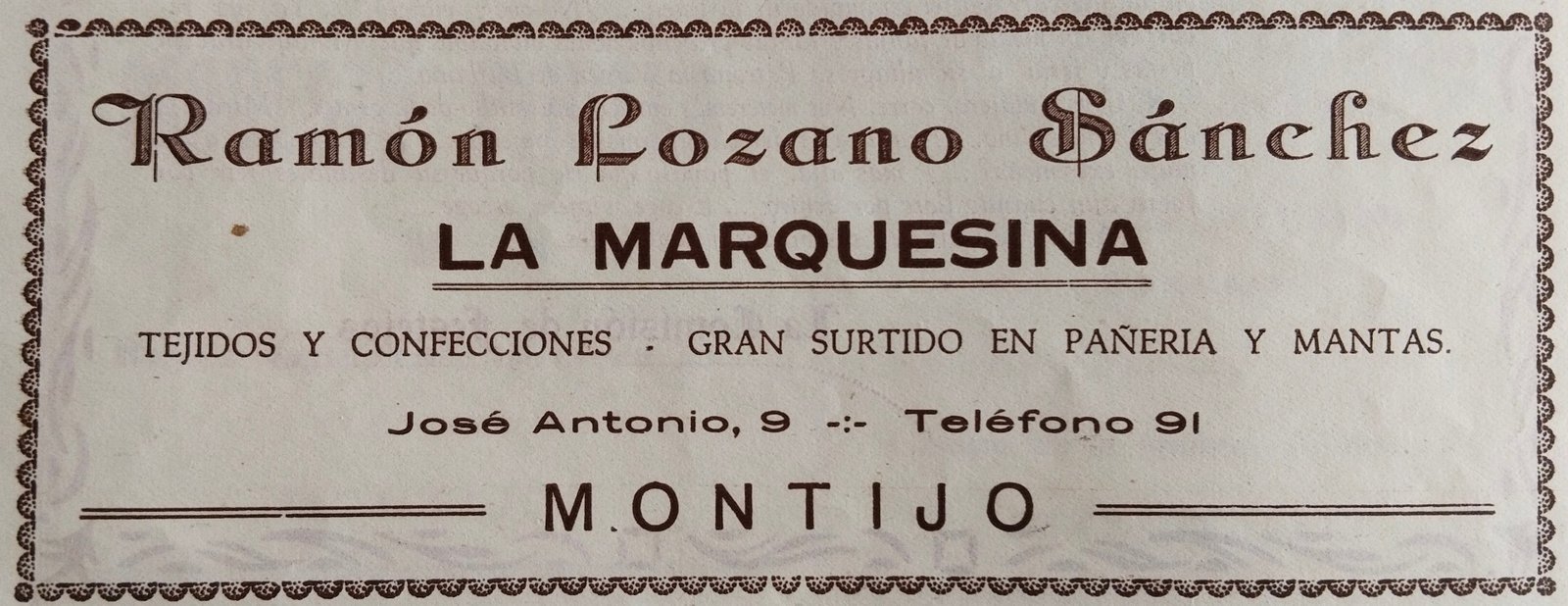 Fue en los años de la posguerra cuando dos comerciantes emprendedores, Ramón Lozano y Maximiliano Arrobas fundaron “La Marquesina”. Tejidos, pañería y mantas fueron los articulos, entre otros, en los comienzos. El fallecimiento de Maximiliano Arrobas hizo que Ramón Lozano quedara solo al frente del negocio, junto con sus hijos y jóvenes que deseaban aprender a ser “dependientes de comercio”.
