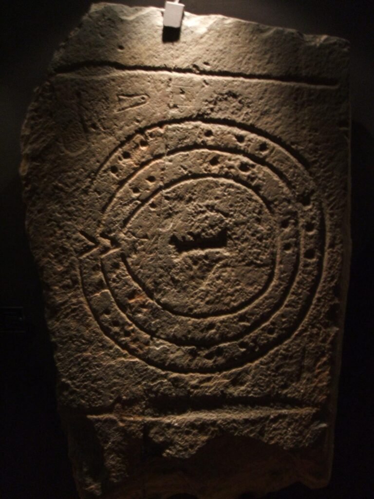 En todas ellas se muestran dibujos con figuras humanas o guerreros, así como otros objetos: lanzas, espadas, espejos y algo que las une, un escudo. Vamos a verlo em ambos objetos prehistóricos, según las fichas de los respectivos museos donde se hallan.