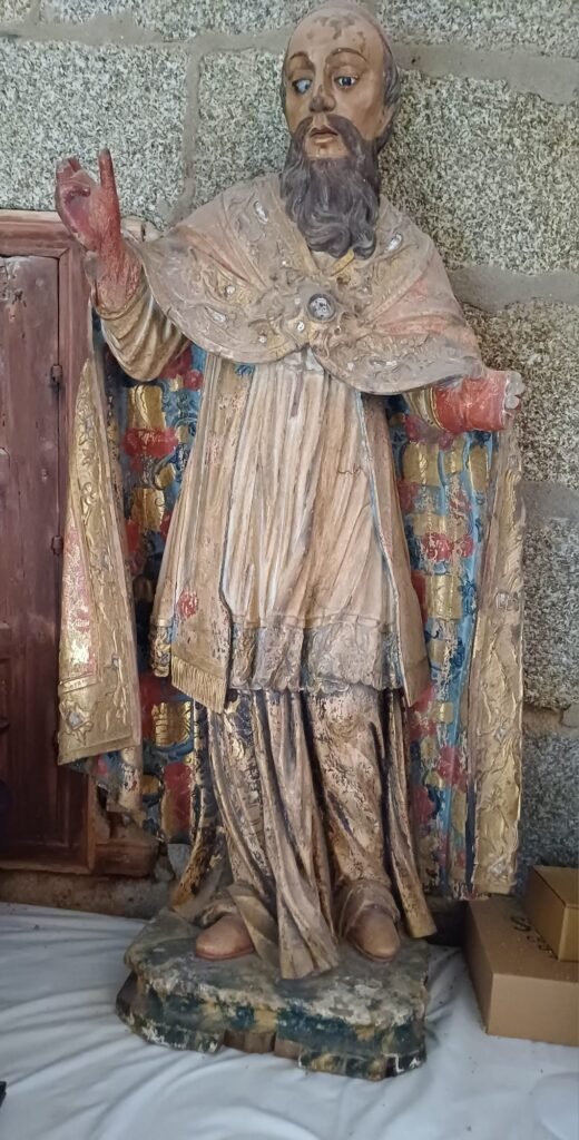 Y por otro lado la segunda imagen se creyó ser San Ramón Nonato pero una vez realizada la recuperación de la misma y una vez recibida en la parroquia, en la presencia de dos sacerdotes, ha determinado ser San Blas Obispo, por los atributos que posee, aunque le falta la mitra y el báculo, distintivos del episcopado.