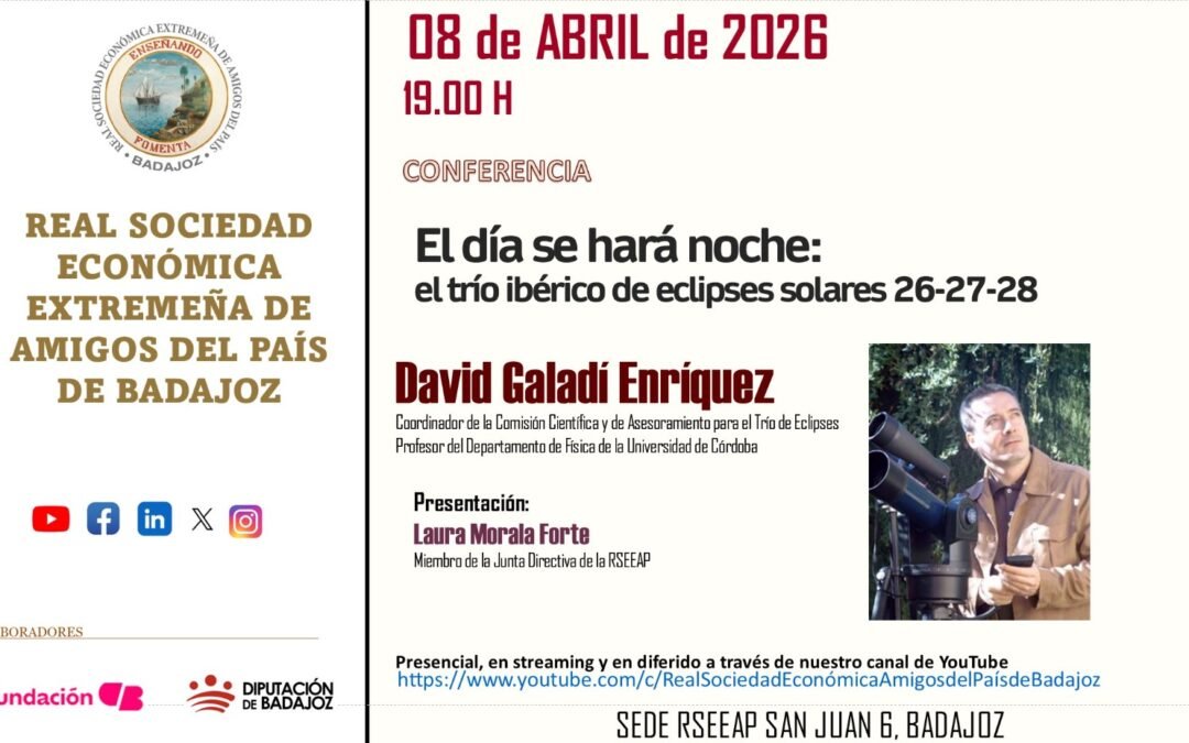 «El día se hará noche: el trío ibérico de eclipses solares 26-27-28» David Galadí Enríquez. 08/04/26