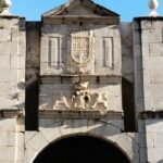En la portada exterior se aprecian los escudos del rey Carlos II y del Conde de Montijo, así como muy diversos grafitos, entre ellos marcas de canteros e incluso un reloj de sol. En la portada interior se abrió una capilla dedicada a Nuestra Señora del Pilar, que da nombre a la puerta. A ambos lados de esta capilla hay dos inscripciones que describen los actos de apertura y bendición del lugar, el 9/IV/1692.