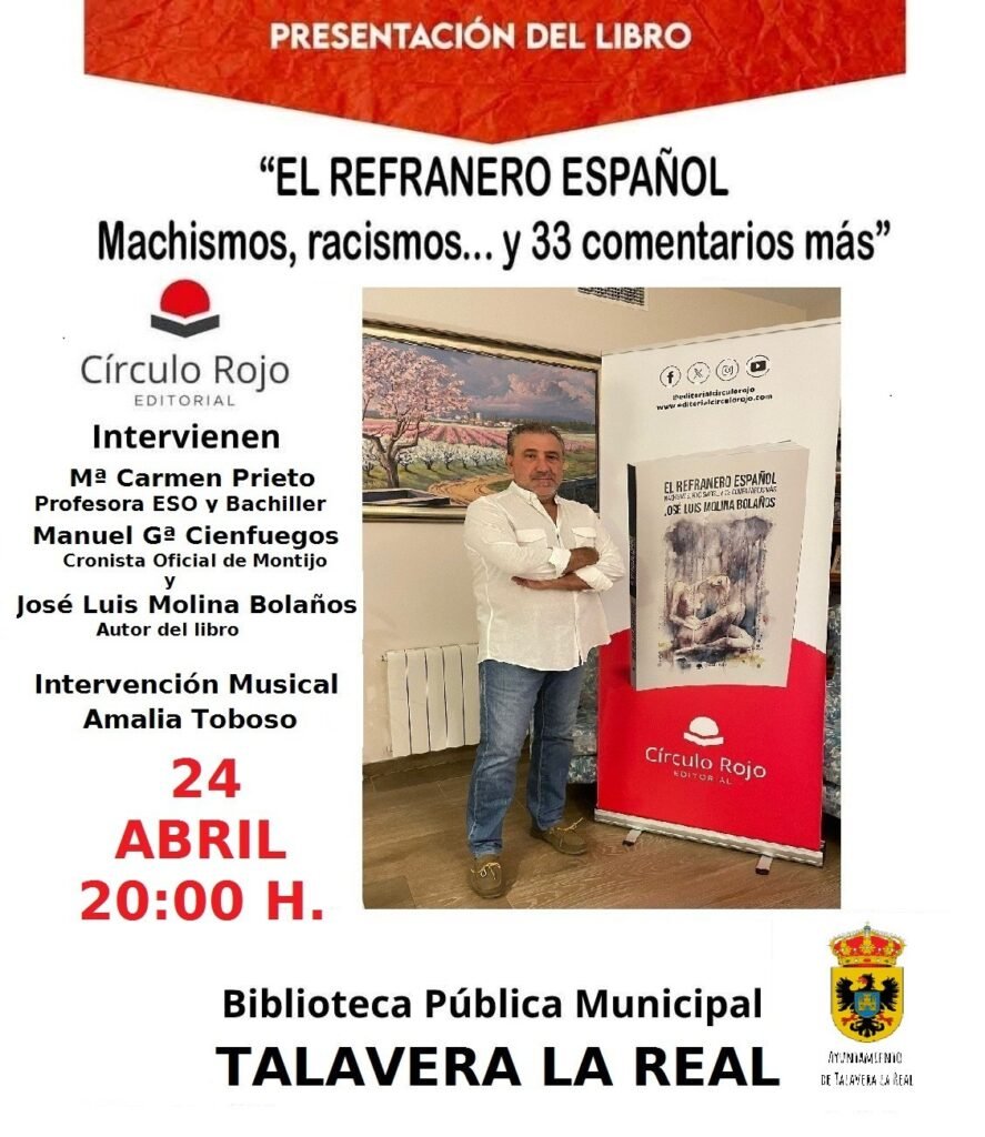 El viernes 24 también estaré en la Biblioteca Municipal de Talavera la Real con el libro de los refranes de José Luis Molina.