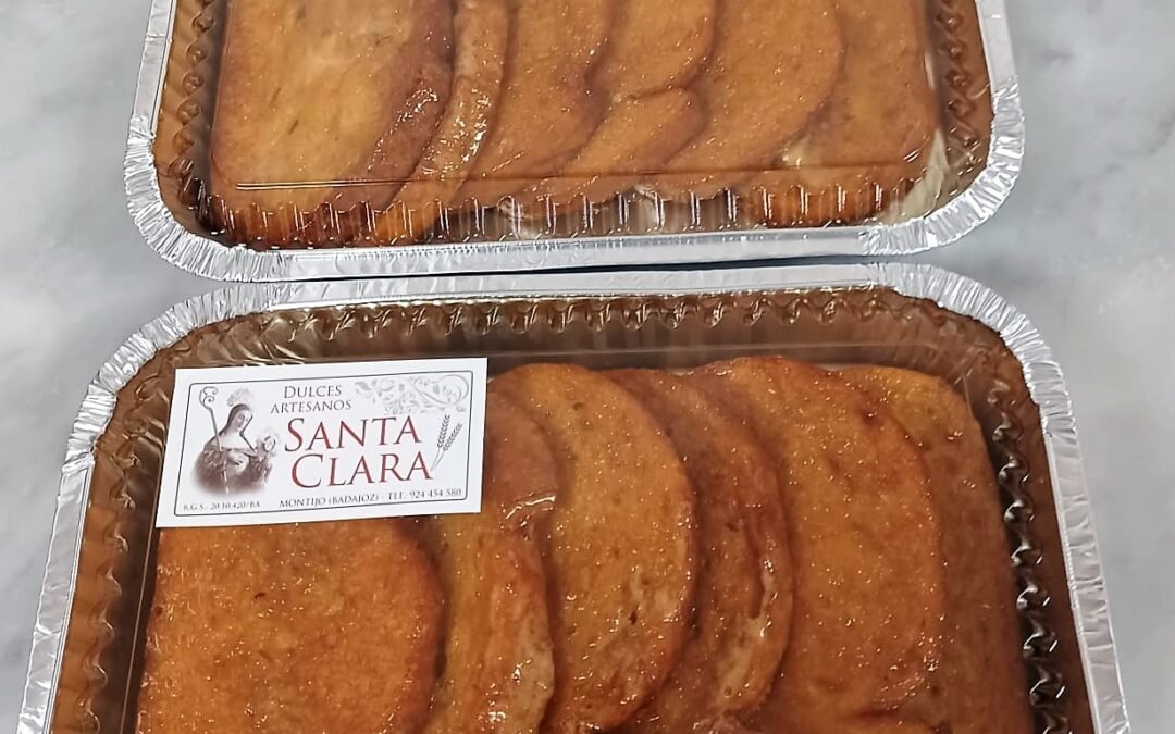Del obrador de las hijas de Santa Clara, en este tiempo de Cuaresma, salen navegando sobre un mar de aceite, azúcar y miel, una tradición artesanal hecha torrija. Precio de la media docena 8,50 euros. Pedidos por encargo en el tfno del convento Santo Cristo del Pasmo de Montijo, 924 45 45 80. Envían a cualquier punto de España.
